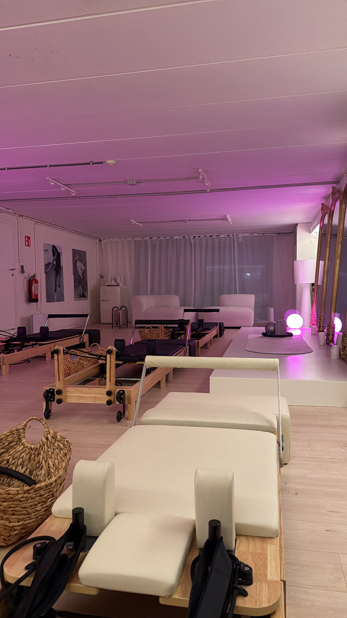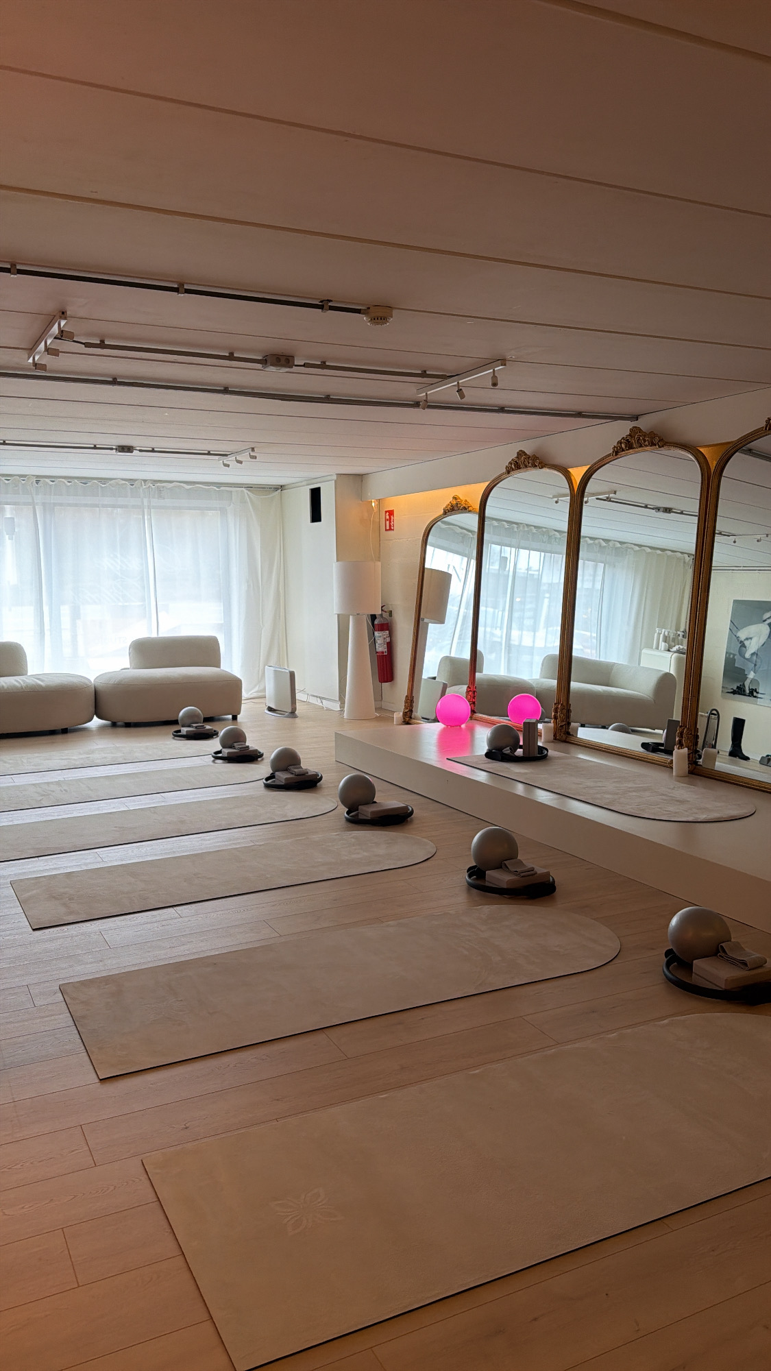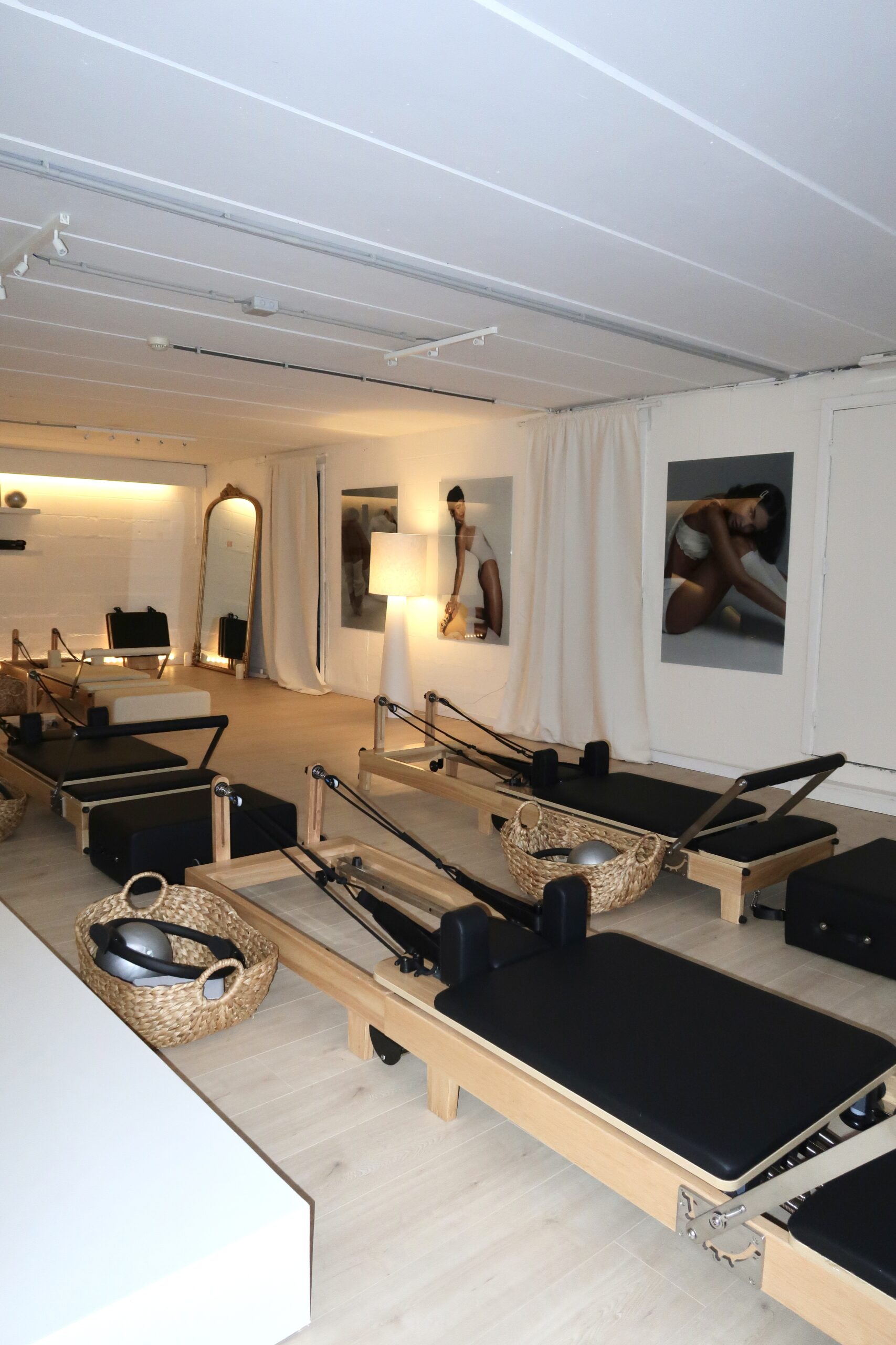 Un aperçu de l’atmosphère du studio : lumière douce, lignes épurées, machines Reformer et tapis soigneusement alignés.
